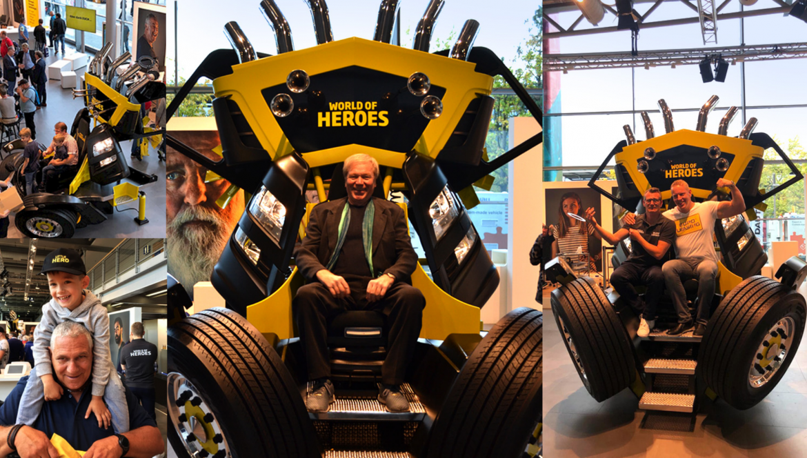 The highlight: our hero throne. An impressive throne made from original truck parts – in full Transformer style. It had a special pull on trade fair visitors, who loved getting their photo taken on it.
